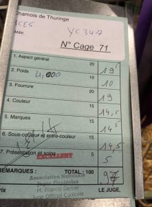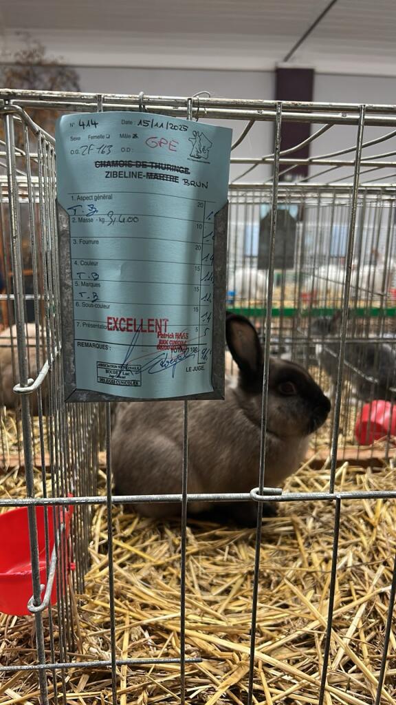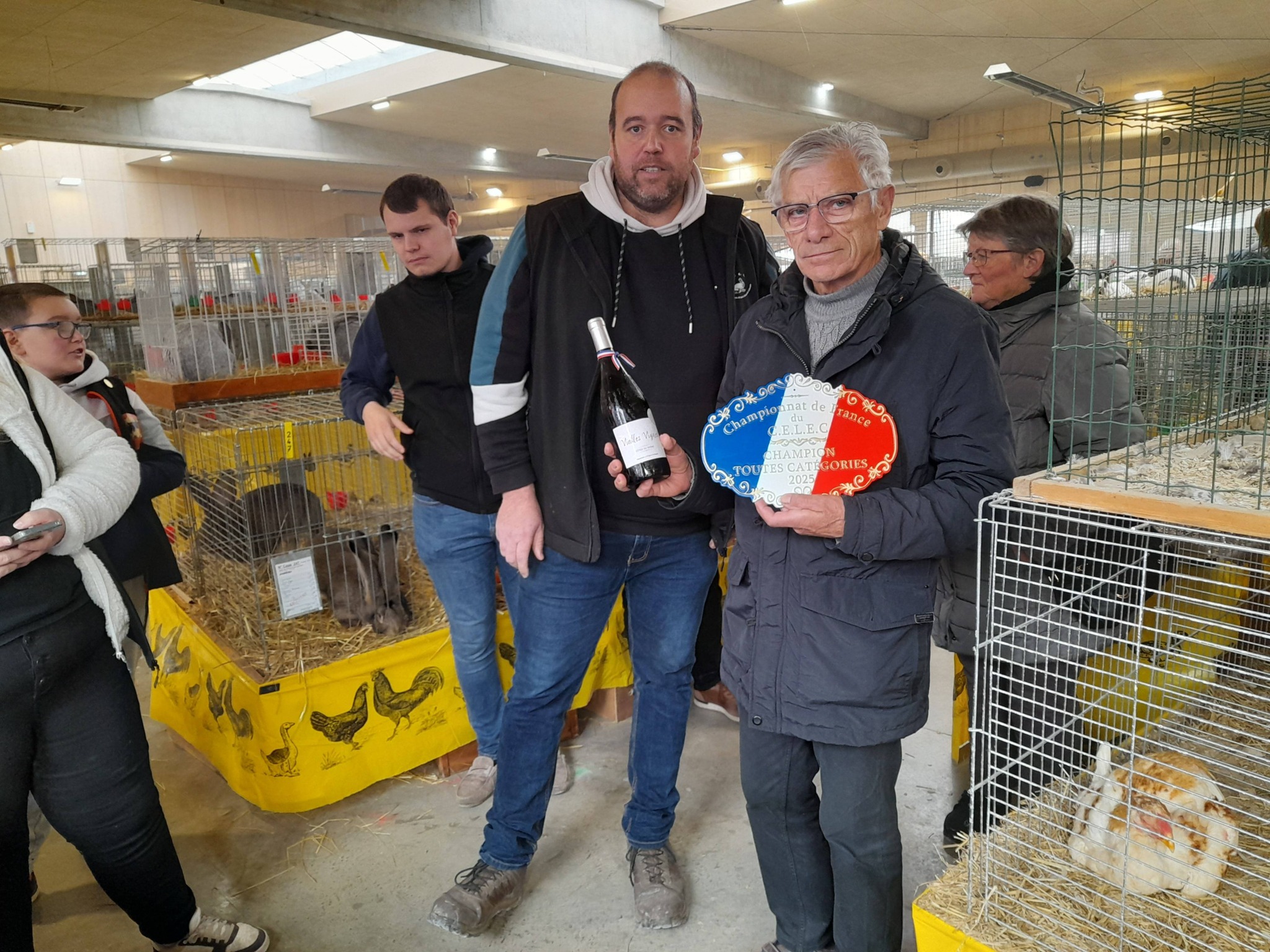 Un deuxième vase de Sèvres, 34 ans après le premier qu’il avait obtenu avec un Fauve de Bourgogne, au même endroit Rennes pour l’éleveur Roland LEROUX membre du CELEC qu’il vient de remporter avec un lapin mâle Chamois de Thuringe. Vase remis par le représentant du Préfet, le directeur de la DDPP en compagnie du représentant de la SCAF Yohann le Guet et des dirigeants de la SBAL. Ce lapin n’avait pas été retenu par l’éleveur pour faire le Championnat de France en novembre 2023, il avait préféré le garder pour les expositions locales.